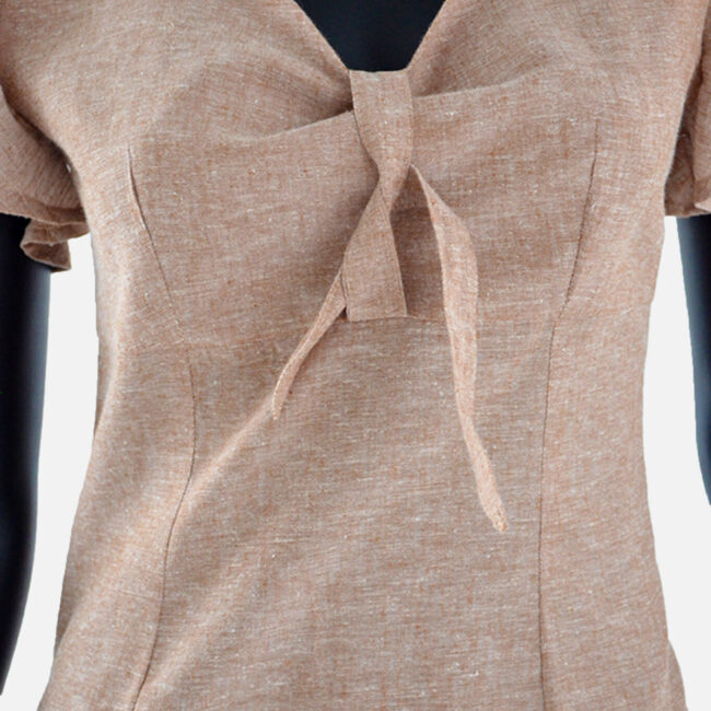 Kualitet i lartë, fustan linoje klasi, me mëngë të shkurtra dhe me një lidhëse në mes.