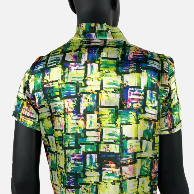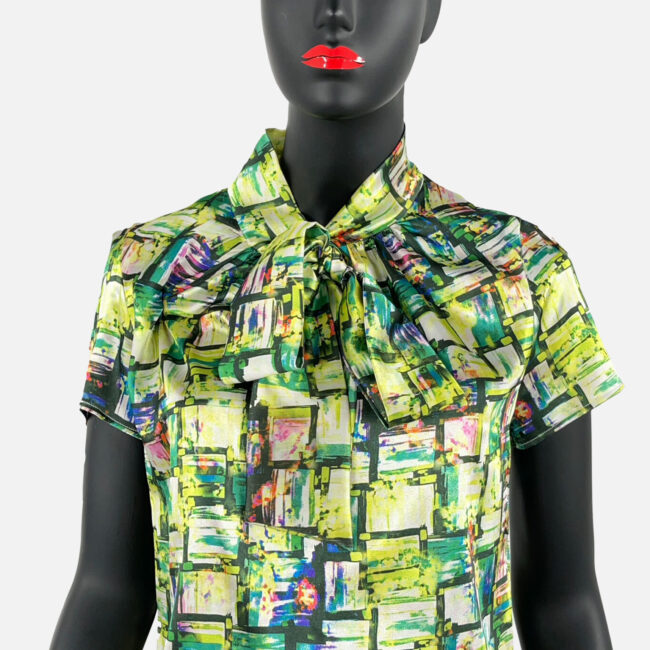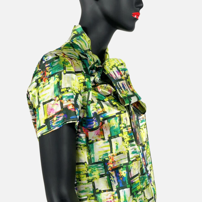 Kualitet i lartë, këmishë saten me mëngë të shkurtra dhe me një lidhëse përpara si fjongo.