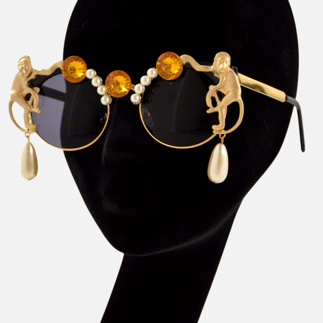 Kualitet i lartë, syze dielli rrumbullake, stil retro, të dizenjuara me tre kristale të shndritshme, dy motive majmuni me bizhuteri perl . Shumë tërheqëse dhe shik.