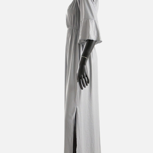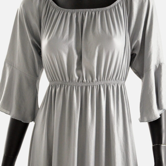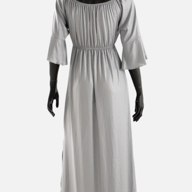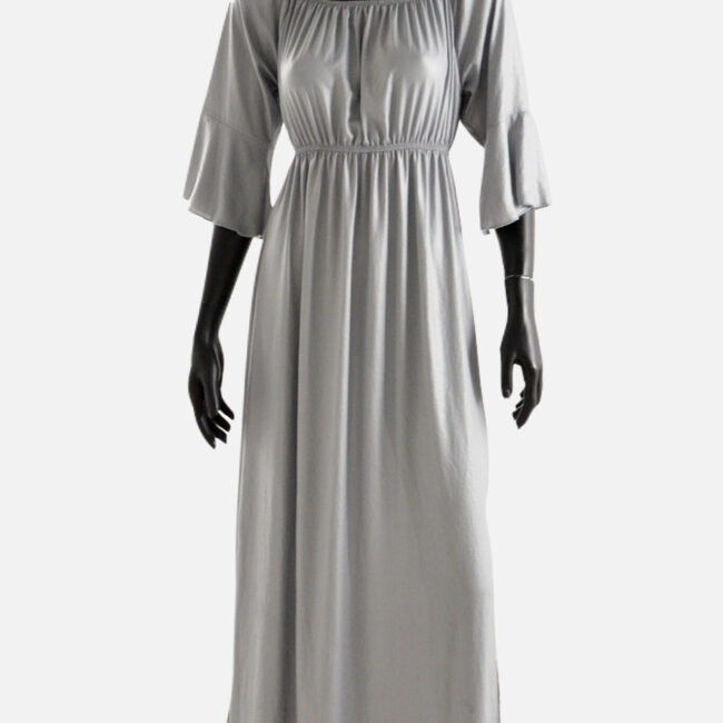 Kualitet i lartë, fustan i gjatë, me jakë rrumbullake, me mëngë trecerekshe dhe me bel llastiku.