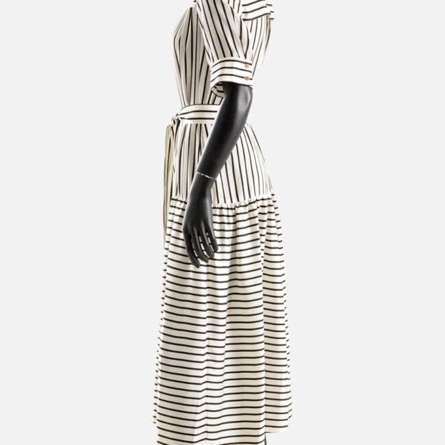 Kualitet i lartë, fustan i gjatë deri tek kycet, me mëngë të shkurtra. Shoqërohet me një lidhëse në bel.