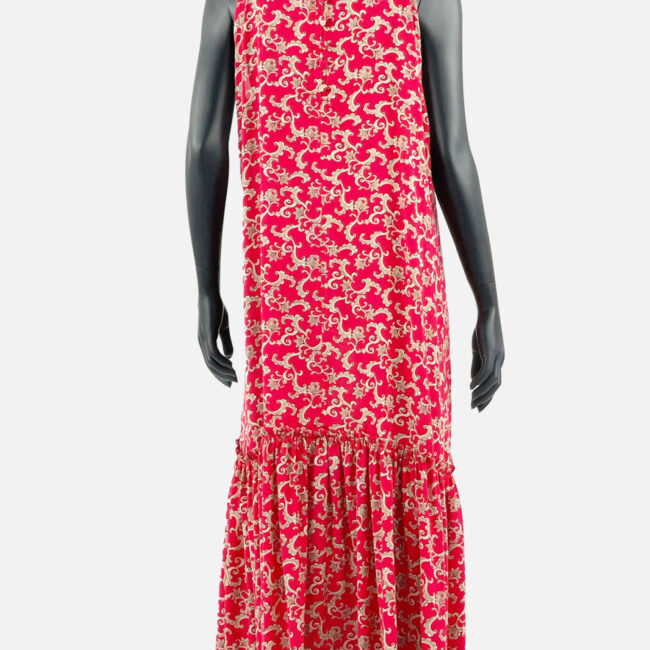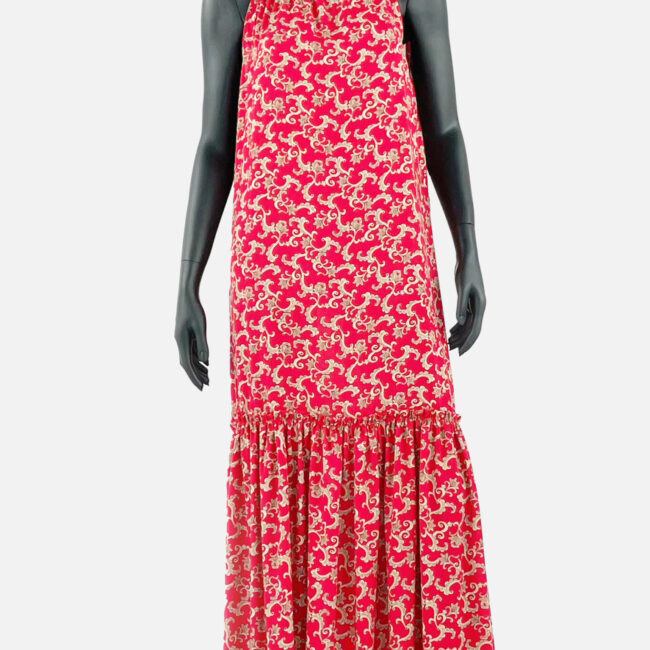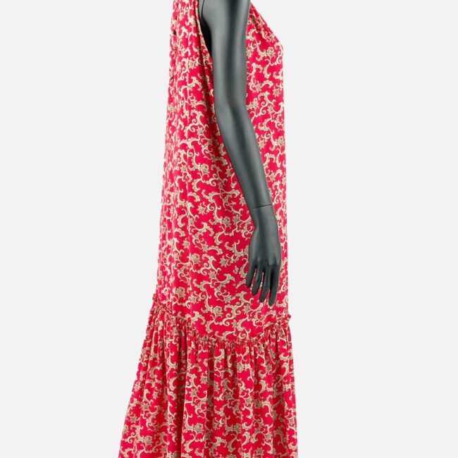 Kualitet i lartë, fustan i derdhur me jakë ‘V’ dhe me fund të lirshëm,dhe me fruda në fund, që e bën më elegant.