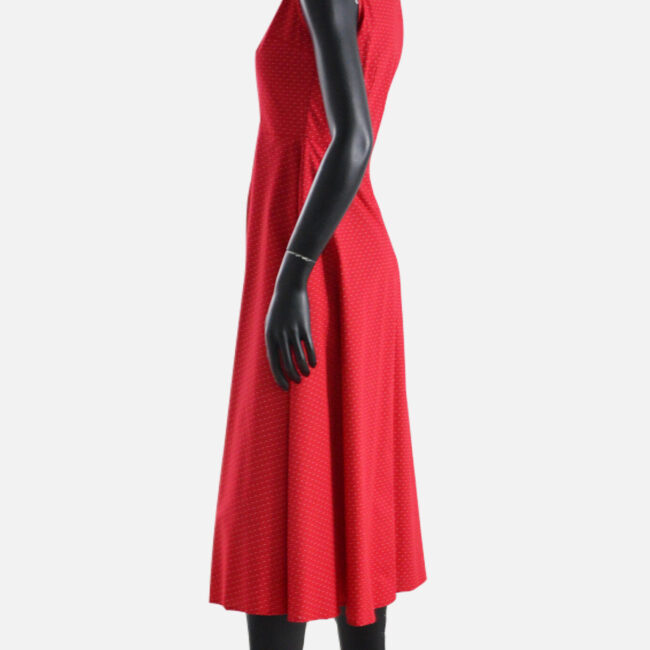 Kualitet i lartë, fustan poshtë gjurit, me jakë rrumbullake dhe me mëngë zhapone.